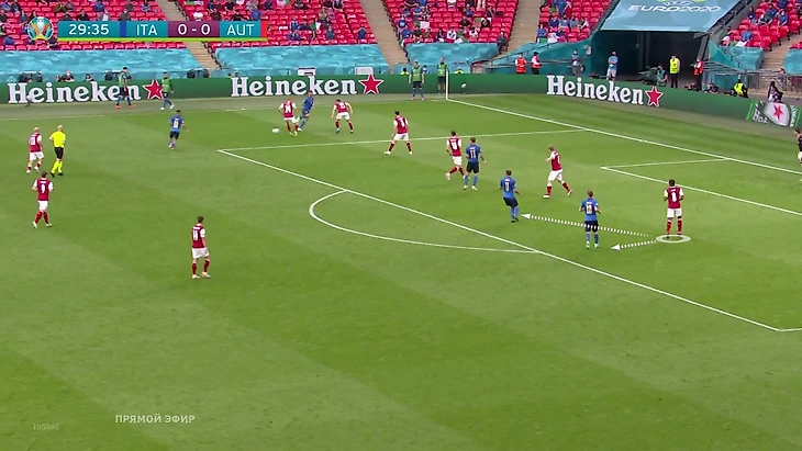 У Италии особенно явно ощущалась нехватка дополнительного контролирующего игрока. Владение на этом отрезке 69% в пользу Австрии. Из-за радикальной открытости моменты возникали в обе стороны, но пару раз за Италию было тревожно.
