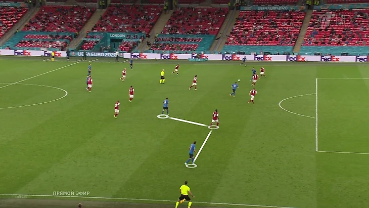 При быстрой смене фланга в подставной ситуации оказывается крайний защитник. Когда у Италии проходил этот прием, Алабе приходилось разрываться:
