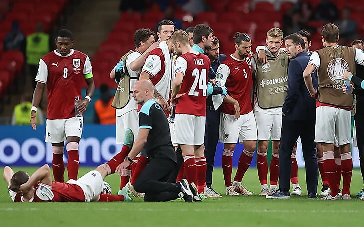 12. Австрия предприняла отчаянную, но впечатляющую попытку спасения во втором тайме дополнительного. Фода бросил всех в атаку – схему с оговорками можно было записать как 4-2-4. Опорную зону формально закрывали Марсель Забитцер (в стартовом плане – десятка) и Алессандро Шопф (чаще всего играет атакующего вингера).