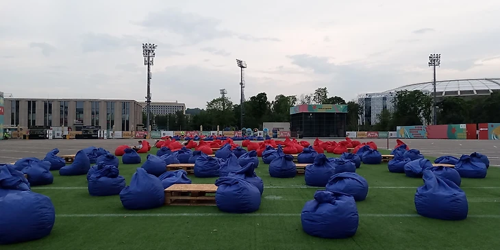 Приехал просмотреть матч Нидерланды - Чехия. На момент начала матча, болельщиков по всей территории фан-зоны насчитал около 10-15, остальные вокруг стюарды, которых заметил порядка 50 человек.