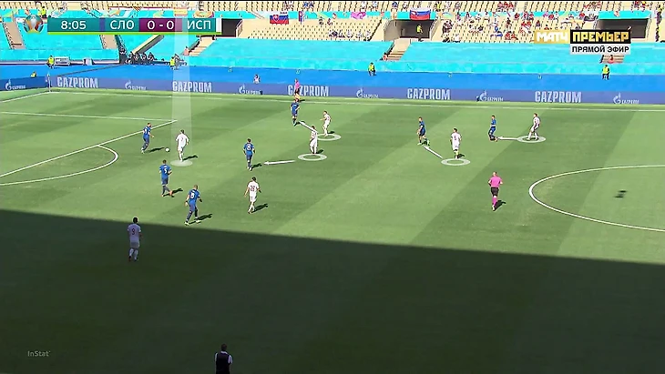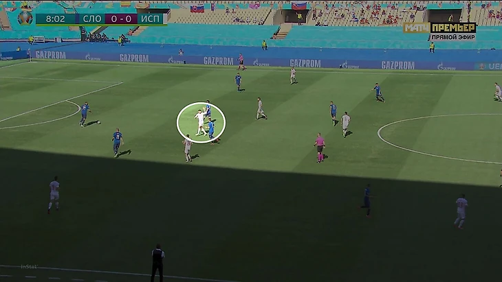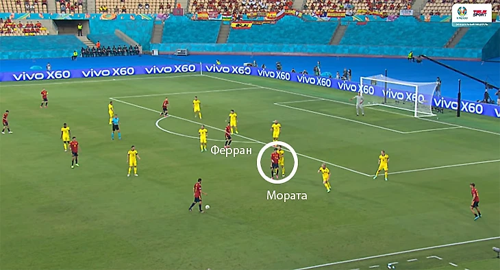 На Евро-2020 сила Мораты в прессинге была особенно заметна в игре со словаками. Альваро становится ориентиром для начала давления: