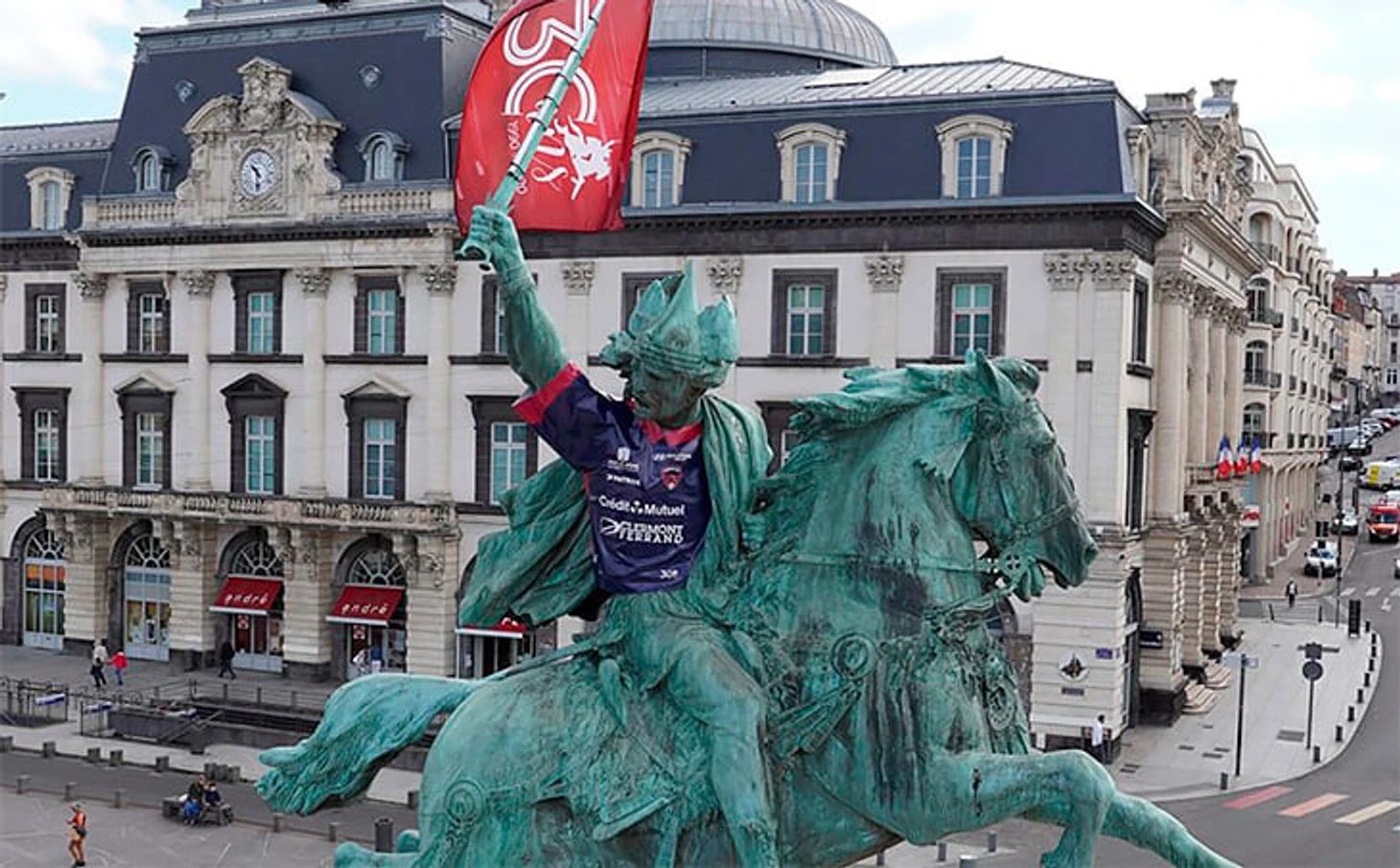 На месте битвы установлен памятник в честь Верцингеторикса, а еще один – в Клермон-Ферране, столице Оверни, той самой земли, которую когда-то населяло племя арвернов. Городской памятник создал Фредерик Огюст Бартольди – выдающийся скульптор XIX века. О его Бельфорском льве вы могли прочитать перед матчем Германия – Франция, Статуя Свободы, возвышающаяся над Нью-Йоркской бухтой, в представлении не нуждается. Памятник Верцингеториксу подпирают четыре колонны, но это не помешало вовлечь его в празднование выхода «Клермона» в Лигу 1. В мае на фигуру всадника нацепили красно-синюю футболку овернского клуба, а в руке у нее оказался флаг с символикой команды.