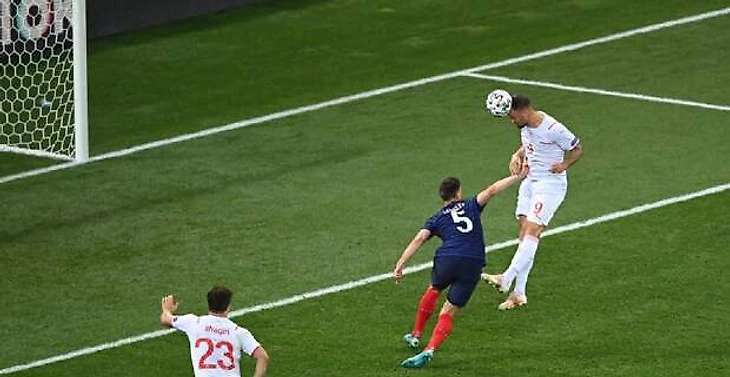 Первый тайм Первые 10-15 минут обе команды провели достаточно активно. Казалось, что Франция с первых минут вдавят Швейцарию в свою штрафную. Но игроки французов решили не сразу включать высокие скорости, и даже позволяли Швейцарии опасно подходить к штрафной и наносить удары. Что по итогу привело к голу. Гол швецырцы забили на 15 минуте. Бывший игрок московского ЦСКА, Стивен Цубер, прошёл по краю штрафной и выполнил навес в центр штрафной.После чего, Клеман Лангле проиграл верховою дуэль Харису Сеферовичу, который отлично переправил мяч головой в угол ворот. Вот так неожиданно, швейцарцы открыли счёт. И даже после пропущеного гола французы включились далеко не сразу. Да, они стали чаще владеть мячом. Но связанно это было не с тем что они начали активнее и лучше играть, а с тем что Швейцария после забитого гола откатилась к своим воротам . И к слову, даже перейдя к более оборонительному стилю игры, швейцарцы всё равно продолжали остро контратаковать. Но по итогу, первый тайм закончился с минимальным перевесом сборной Швейцарии и без хотя бы одного явного голевого момента со стороны французов. 1-0