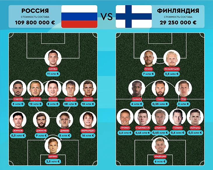 Стоимость состава определяется не просто так. Это качества игроков, их сила и потенциал. У сборной России почти все играют в РПЛ и не могут стоить дорого, ведь это - лига второго эшелона, что видно по выступлениям наших команд в еврокубках. Звезды здесь – это средние игроки в Европе. Наглядный пример - Никола Влашич, который не являлся лидером даже в “Эвертоне”, а в России - супертоп. Да, кто-то может себя круто показать в европейских лигах и стоить дороже, но мы этого не знаем.