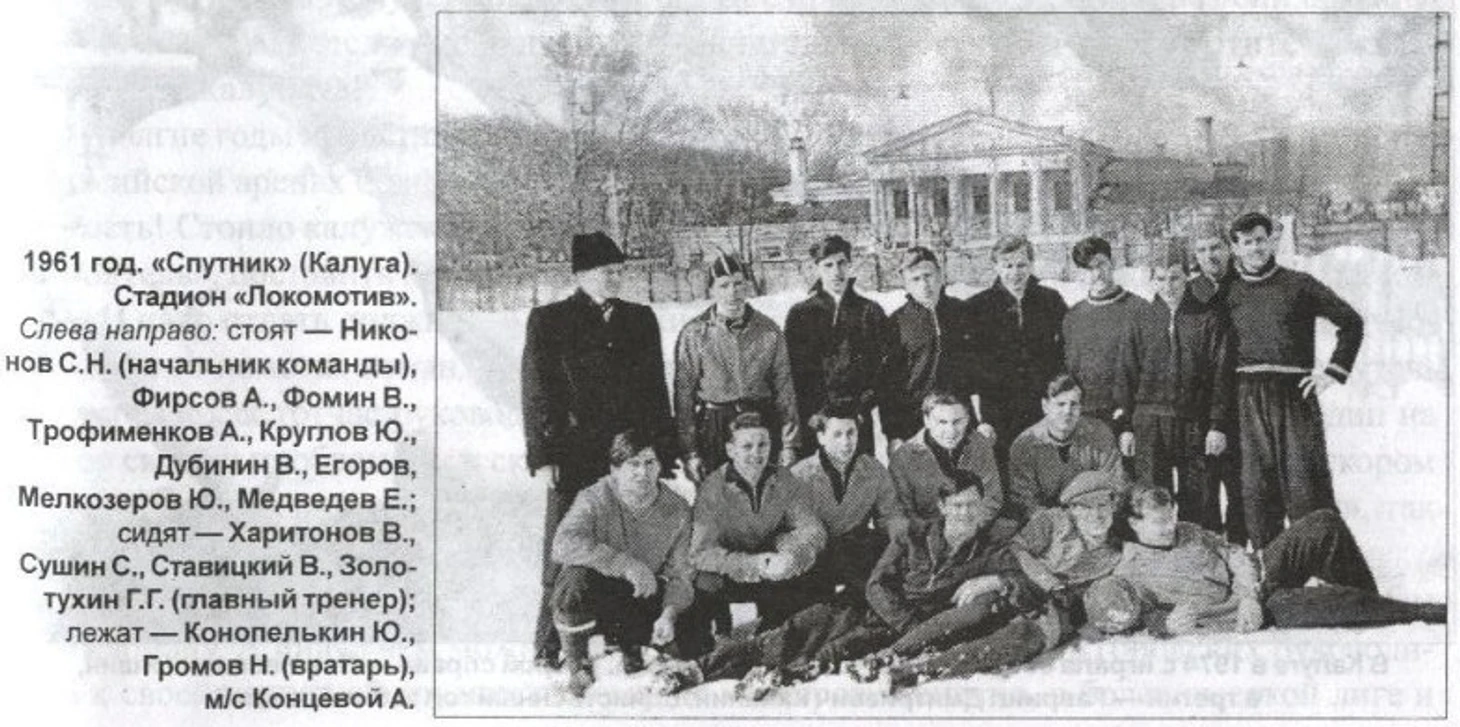 Профессиональный футбол пришел в Калугу в 1960 году, когда команда «Спутник» дебютировала в первой зоне РСФСР класса «Б. Где выступал с 1960 по 1964 гг., не снискав особых успехов, с 1965 года Калугу стал представлять «Локомотив».