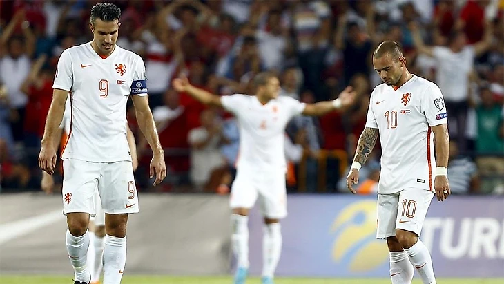 Команда, которая еще недавно считалась очень перспективной и неординарной, скатилась к примитивному, построенному лишь на мастерстве пары игроков, футбол. Очевидно, что такое падение связанно с абсолютно провальными решениями футбольного союза Нидерландов в вопросе выбора главного тренера. Последующая отставка Адвоката и назначение более современного и успешного специалиста Рональда Кумана, дает надежду на светлое будущее поколения сборной. Но уже без Роббена и Снейдера, грустно завершивших свои карьеры в национальной команде, после отборочного этапа.