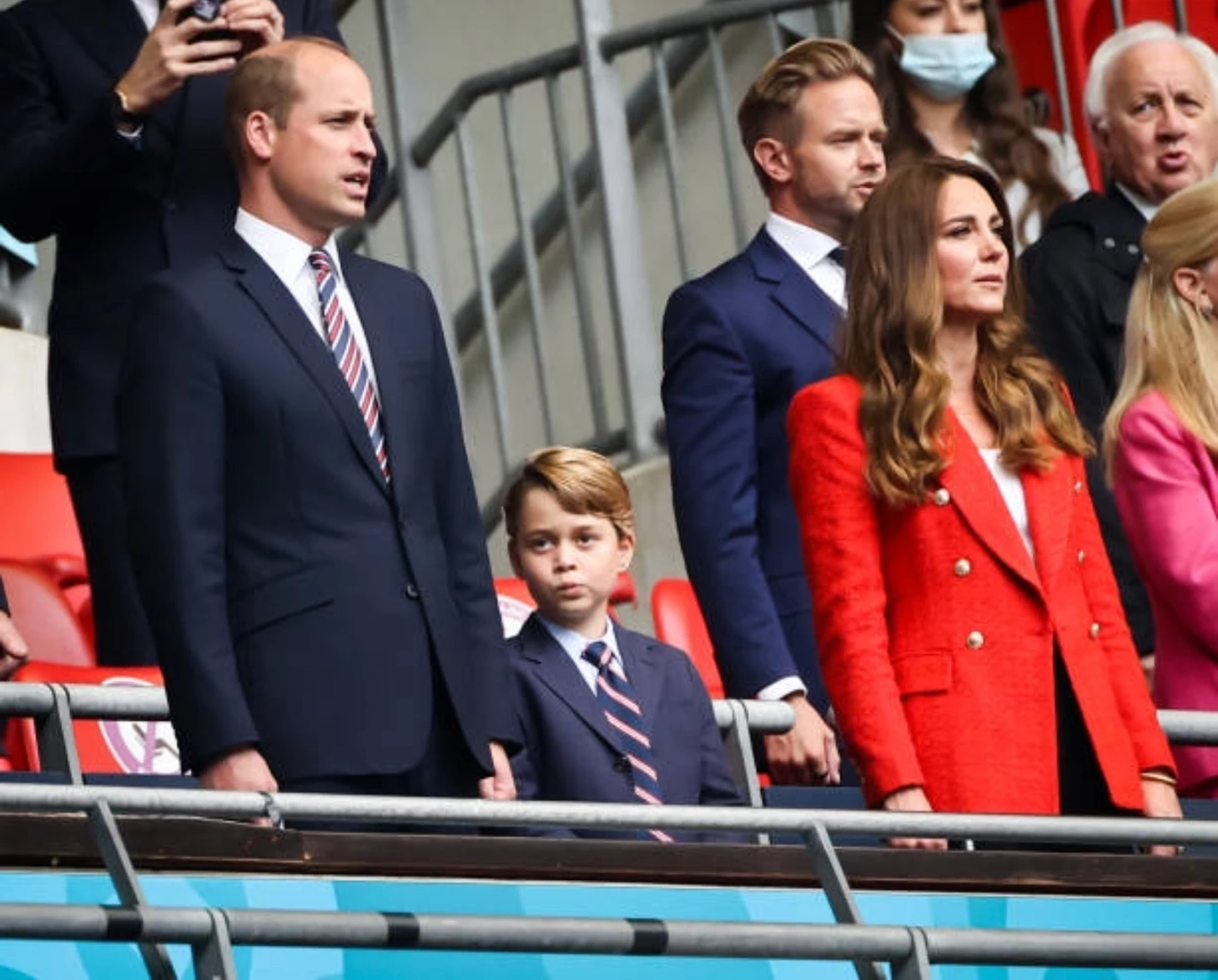 Команду Англии на трибунах поддерживали члены королевской семьи: принц Уильям, Кейт Миддлтон и их сын принц Джордж.