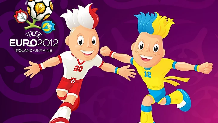14-й по счёту ЧЕ принимали также две страны - Польша и Украина . Символами турнира стали также братья-близнецы , также одетые в цвета национальных сборных . Славек и Славко.