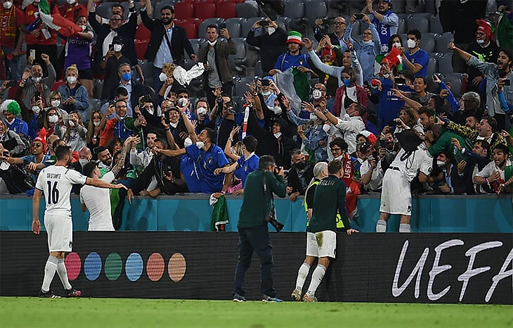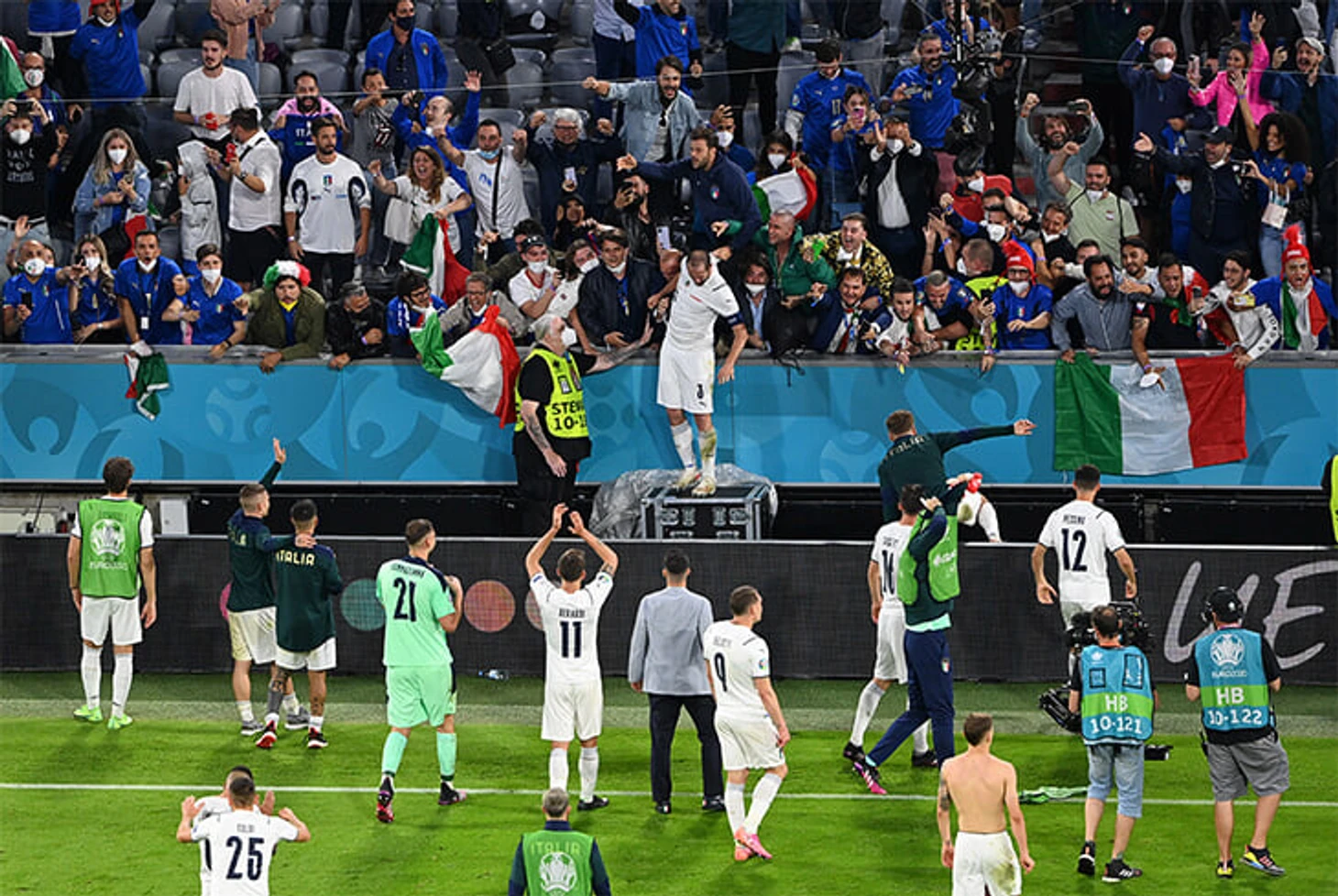 Сборная Италии весь плей-офф проводит не в Риме, но все равно как дома – только посмотрите, что творилось в Мюнхене после победы над Бельгией (2:1).