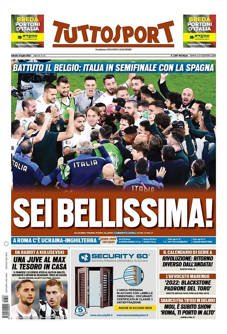 Ты прекрасна! Заголовки Gazzetta, TuttoSport и Corriere за 3 июля