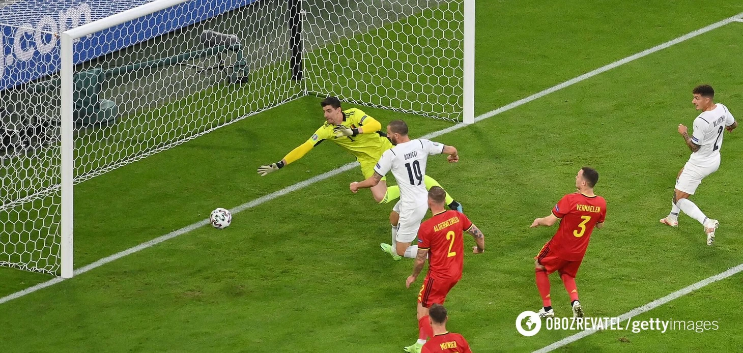 При счете 0:0 бельгийцы заставили пару раз показать вратарское мастерство Доннаруму, но при его росте и при том, что удары были с дальней дистанции они и не должны были стать голом. Италия была близка к тому, что бы вести уже на 13 минуте после стандарта с правого фланга, но несколько сантиметров сыграли плохую службу для Леонардо Бонуччи - офсайд.