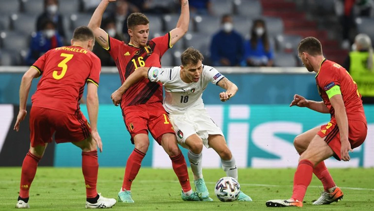 На 31 минуте итальянцы быстро разыграли штрафной забросом в штрафную, мяч оказался у бельгийцев, но Ян Вертонген пытался выйти из штрафной за счет короткого пасп и отдал передачу на активно прессингующего Вератти, который отдал пас в штрафную на Бареллу, а тот на маленьком пространстве смог разобраться с троими и забить в дальний угол. Барелла однозначно - один из лучших игроков на данном турнире, хоть он и кажется малозаметным.