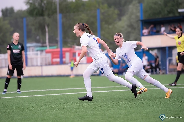 Первый гол за два с небольшим года забила Дарья Еременкова. Ассистировала ей со штрафного Ксения Шахова, для которой это уже 5-я результативная передача в чемпионате.