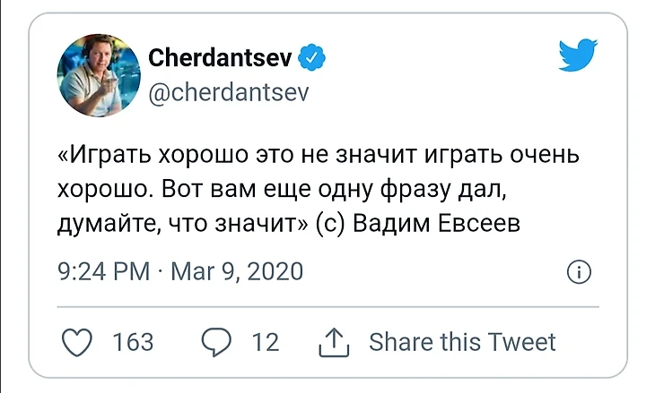 Да и будучи тренером Евсеев выдаёт гениальные цитаты, например про обыгранный "Газпром" или про самого дорогого водителя "автобуса" Диего Симеоне, на которого Евсеев равнялся в "Уфе". Во многом из-за его прямоты выдавались такие перлы. Перлы осознанные. А это всё же неплохое качество.