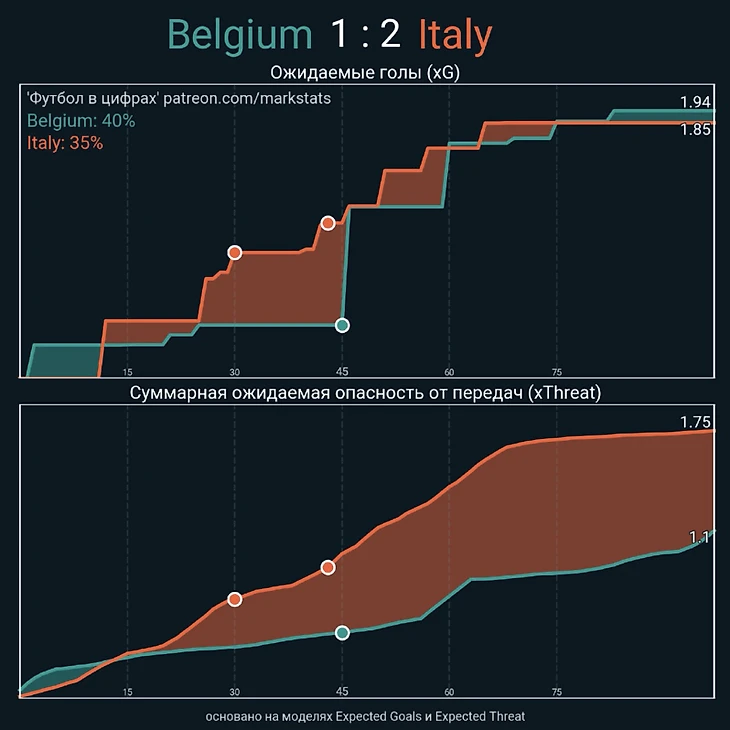 Данный график от проекта "Футбол в цифрах" очень наглядно демонстрирует обе стороны медали, и насколько они гипертрофированы именно у сборной Италии на этом Евро