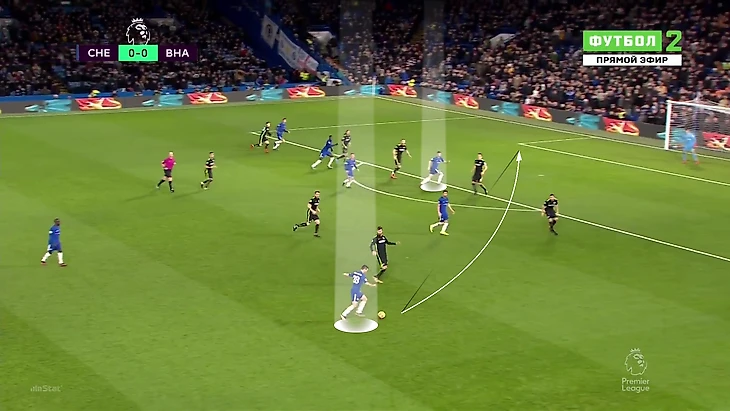Томас Тухель воспользовался наработками коллег. При нем Аспи играл и третьего центрального, и латераля. Все зависело от установки на матч для Риса Джеймса. Если «Челси» требовались его рывки и кроссы – Аспи опускался и играл третьего центрального, если требовались скорость и подстраховка – Аспи поднимался повыше и играл латераля.