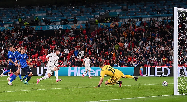 Италия и Испания подарили красивый полуфинал с драмой в серии пенальти. Жоржиньо уверенно подошел к мячу и закончил все с фирменным подпрыгиванием. Хладнокровно и стильно.
