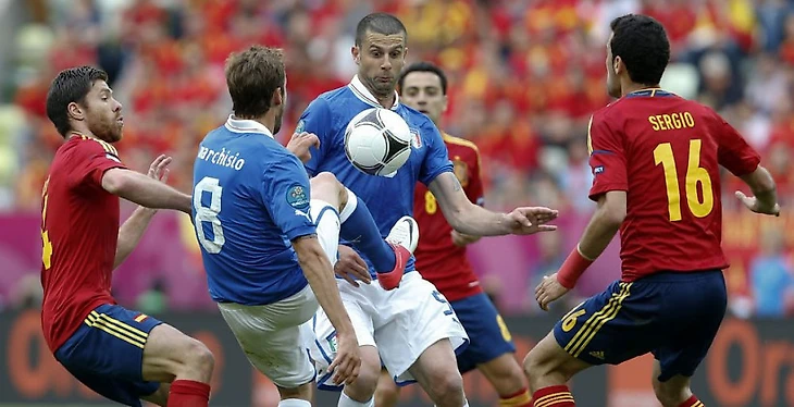 К Евро-2012 испанская национальная сборная подошла в статусе гегемона мирового футбола последних лет. Команда Дель Боске выиграла буквально всё — забрала титул чемпиона Европы-2008, а также феерично выиграла мировое первенство-2010. Для сборной образца того года буквально не существовало преград, а потому матч Испания—Италия, в котором разыгрывалось звание триумфаторов турнира, получился очень грустным. Для итальянцев, разумеется.