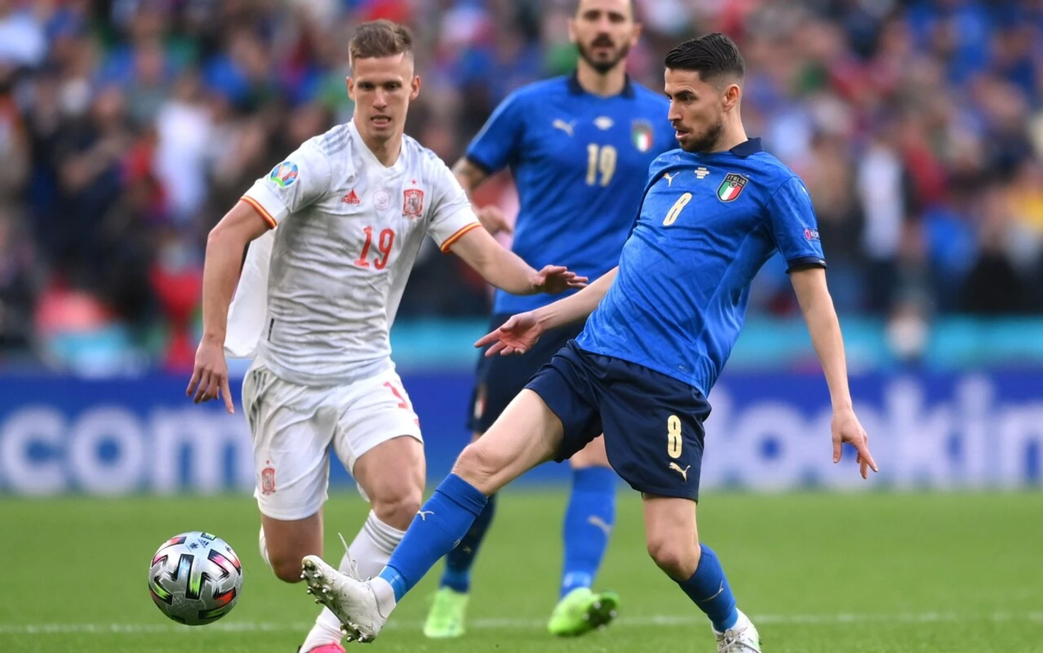 Ключевым изменением в составе сборной Испании было отсутствие номинального форварда. По схеме от УЕФА ложную девятку должен был исполнять Оярзабаль, но ею был Дани Ольмо. Эта идея и прекрасная игра Дани удивила итальянцев, поскольку Манчини не придумал, как этому противодействовать.