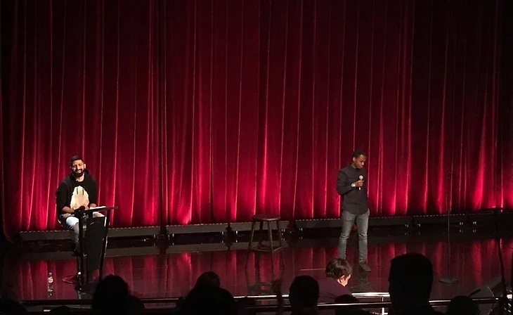 Вначале было стремно, потом я успокоился и рассказал свой материал: про цвет кожи, про то, что я хорошо говорю на русском, меня не озвучивают. С этого люди посмеялись. Потом я пытался спародировать кавказца. Там сидел Гурам Амарян, его это тоже позабавило.