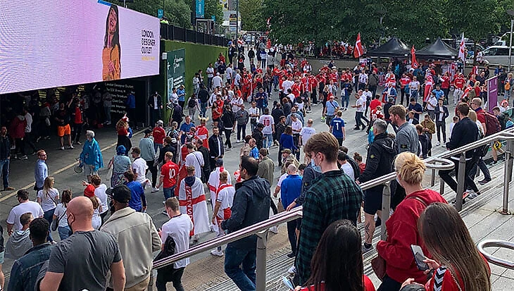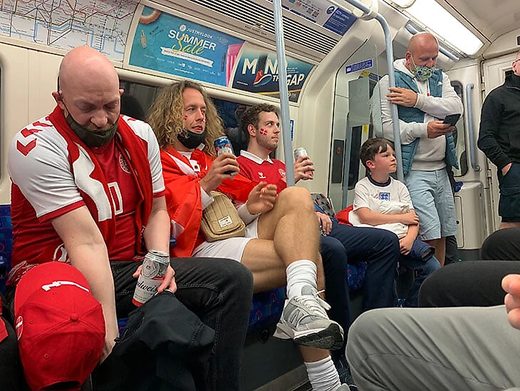 Но при этом окрестности «Уэмбли» все равно бурлили с раннего утра. Если на дальних от стадиона станциях метро в районе 3-4 часов дня пропорция англичан и датчан была примерно равной, то у арены белое море просто сносило всех остальных.