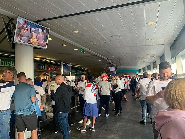 Распевались уже на подъезде к Wembley park: оказалось, что большинство любимых песен фанатов сводятся к ненависти к шотландцам (и эти люди пару недель назад пытались мне объяснить, что матч совсем не принципиальный) и немцам.