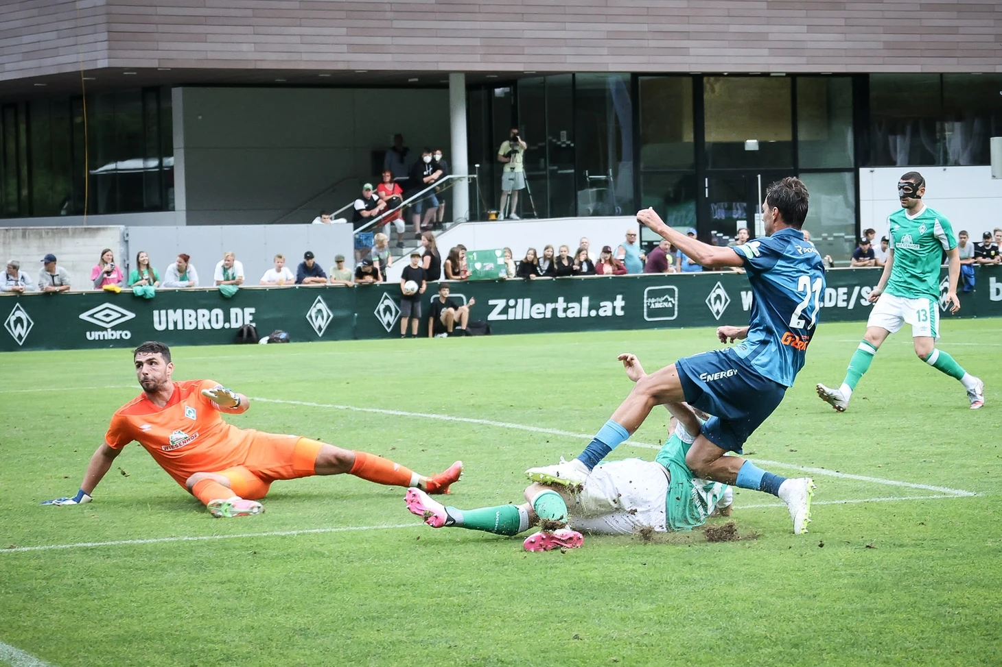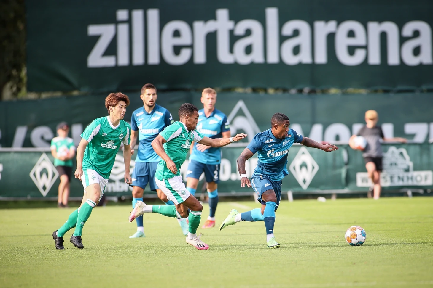 Формально в российских СМИ «Зенит» фигурирует первым, но по сути играли в гостях у «Вердера». Хоть и в Австрии. Немцы приезжают на сборы в местечко под названием Целль-ам-Циллер уже около десяти лет. В этот раз, как в эфире рассказывал Александр Дорский, даже привезли с собой фан-шоп. Ну, а что? За такой срок должны появиться поклонники среди местных жителей. Их, жителей этих, кстати, меньше двух тысяч, а стадион номинально вмещает как раз столько. Так что при желании можно разместиться на футболе целым населенным пунктом. Впрочем, визуально трибуны на двухтысячник не тянули. А там – кто его разберет.