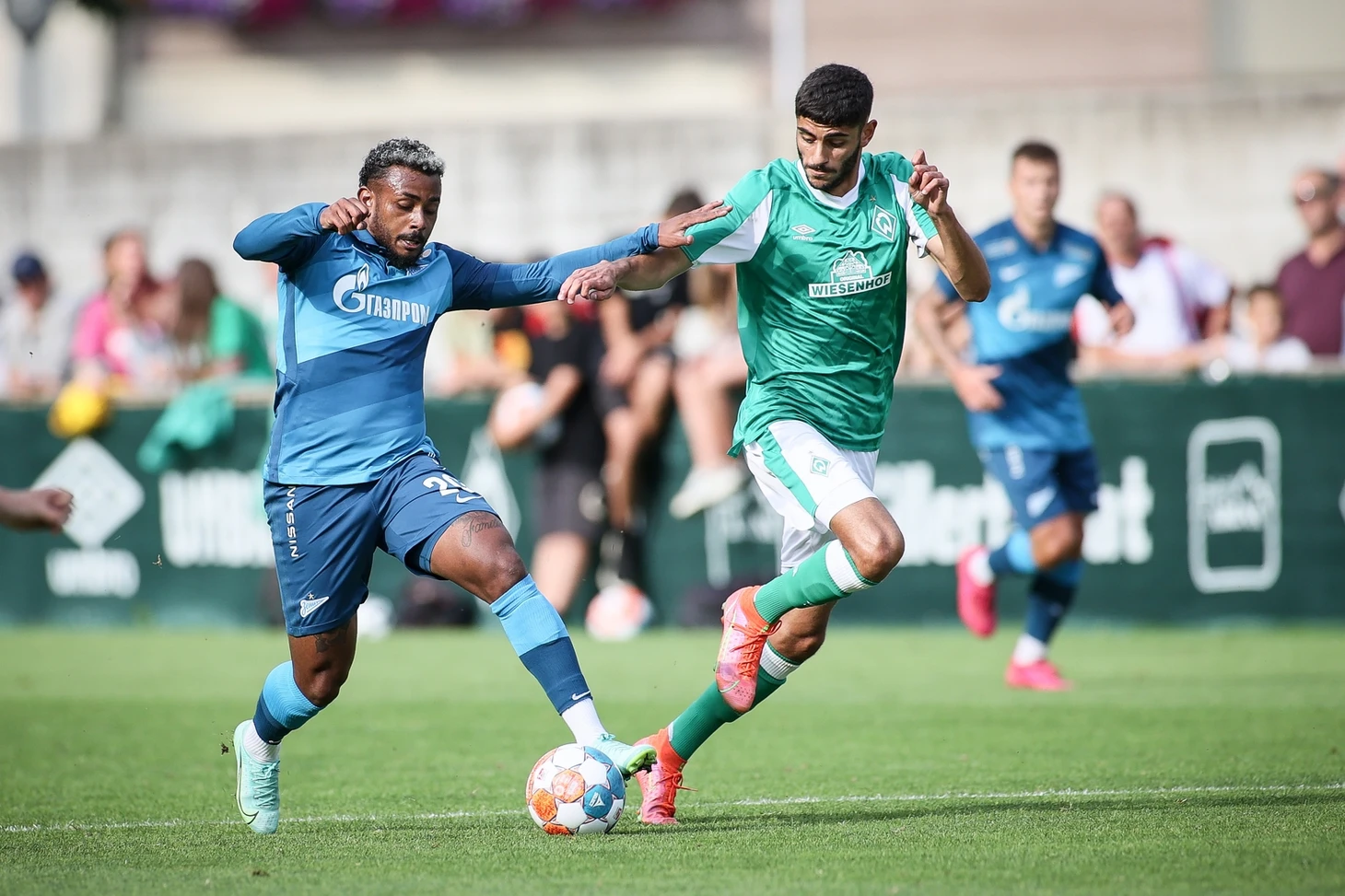 Давайте непосредственно к игре. Она была куда более живой и интенсивной, чем субботняя, с постоянно возникающими обоюдными шансами. Сразу отмечу, что диаметрально разный результат – 0:2 в первом тайме, 2:0 во втором – обоснован тем, что «Вердер» в перерыве сильно ротировал состав, отправив отдыхать в том числе двух упомянутых лидеров и игрока, забившего первый мяч. «Зенит» же обошелся без массовых замен, делая точечные перестановки на всем протяжении второго тайма.