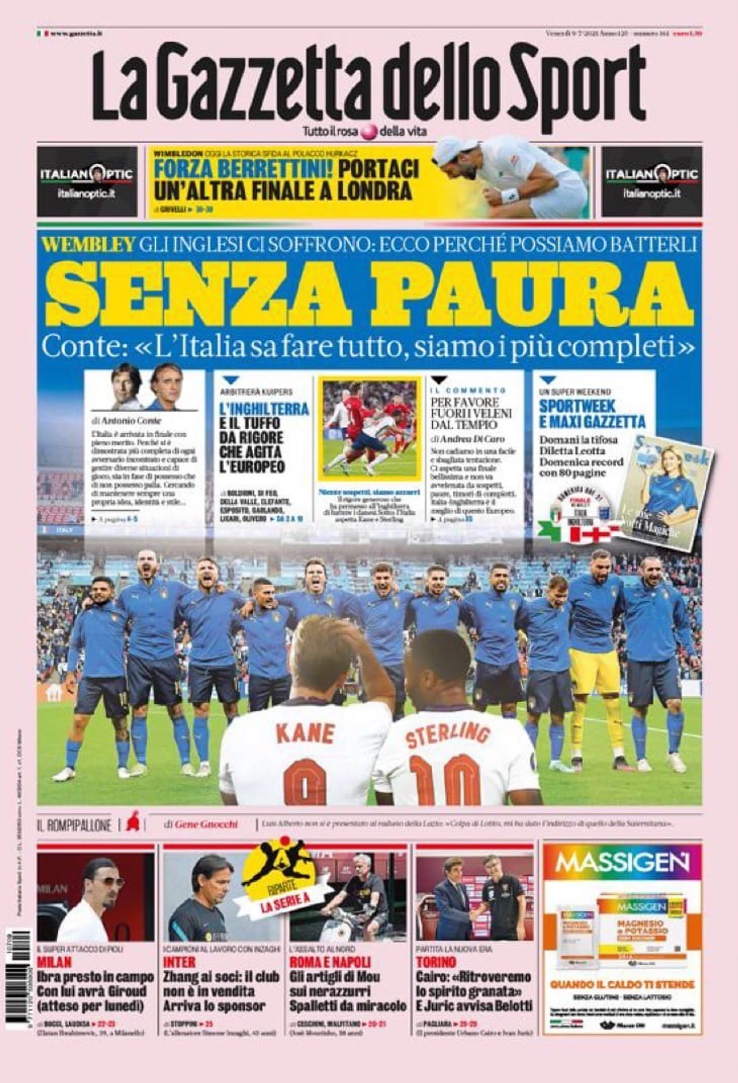 Без страха. Заголовки Gazzetta, TuttoSport и Corriere за 9 июля
