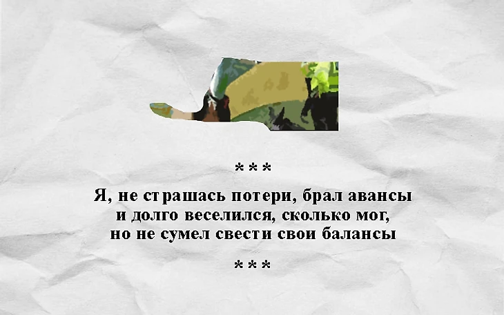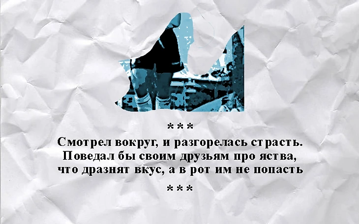В качестве эпиграфов в статье использованы фрагменты из сонетов британского поэта Джорджа Гаскойна. В качестве материала для исповеди использованы фрагменты биографии британского футболиста Пола Гаскойна «Газза. Моя история». По своей сути это и была исповедь, первая попытка великого шута, футболиста и алкоголика объясниться с демонами в своей голове.