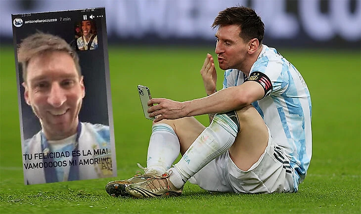 А когда все успокоилось, Лео остался на поле и набрал жене Антонелле.