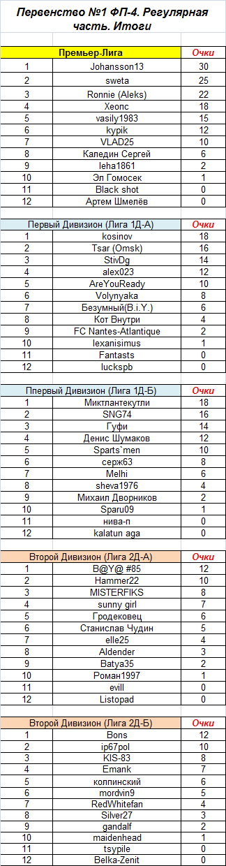 Таким образом, склдывая эти два зачета, получаем состояние Чемпионата ФП-4 по итогам Первенства №1: