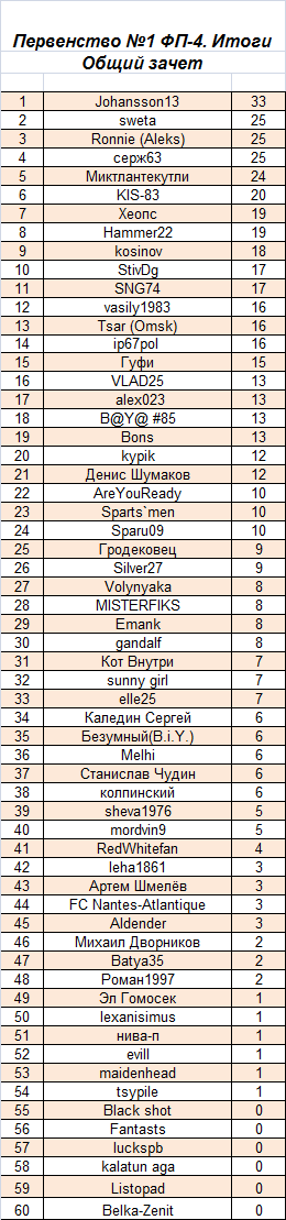 Ну а теперь пришло время подвести очковые итоги и заглянуть, как уже начал формироваться зачет ФП-4.