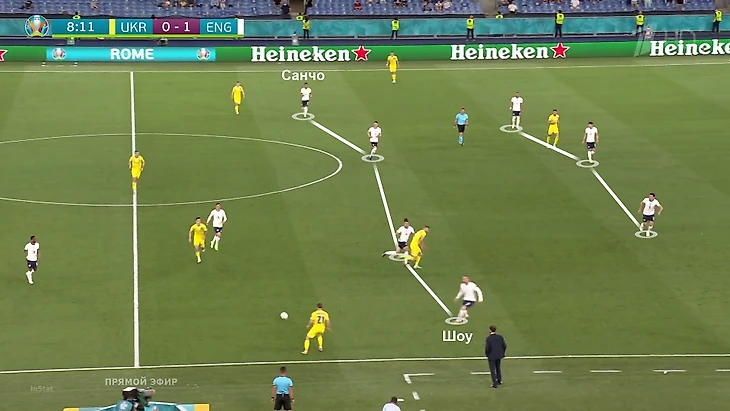 Наверное, лучше всего глубину адаптации Саутгейта и степень уважения к каждому сопернику показывает готовность подстраиваться под Украину. Разумеется, Англия играла от себя в том матче. Но при обороне на своей половине переходила на тройку защитников с Санчо и Шоу в ролях латералей: