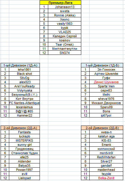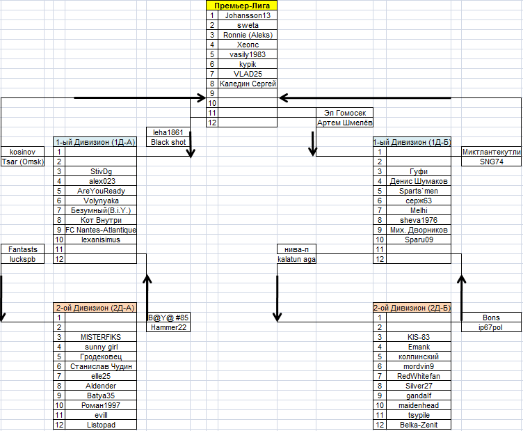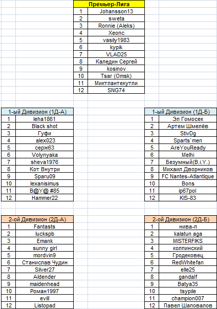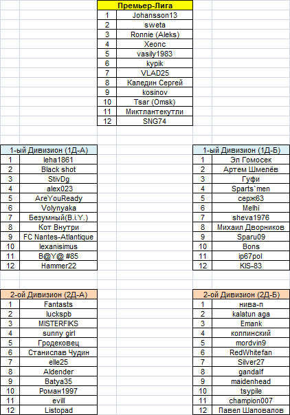 Итак, зная итоговое турнирное положение во всех Лигах и Дивизионах по итогам Первенства №1, пришло время определить вид этих самых Лиг и Дивизионов уже на дистанции Первенства №2.