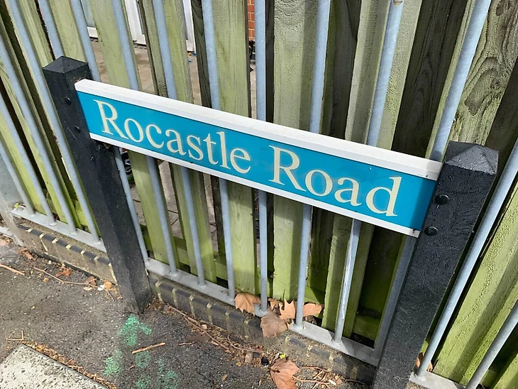 Перейдя по мосту из Крофтон-парка на Тернхэм-роуд и свернув налево ко входу в парк Хонор Оук, вы пройдете мимо Рокасл-роуд.