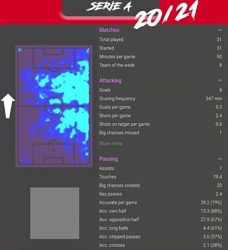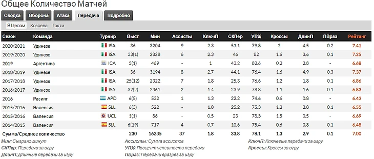 Целых 37 ключевых передач ставят его на второе место в лиге, а 82 паса в финальную треть позволяют входить в топ-5, тогда как 108 передач с продвижением на 10+ метров – второй по величине показатель в Серии А, а еще он входит в тройку лучших по количеству кроссов – 44.