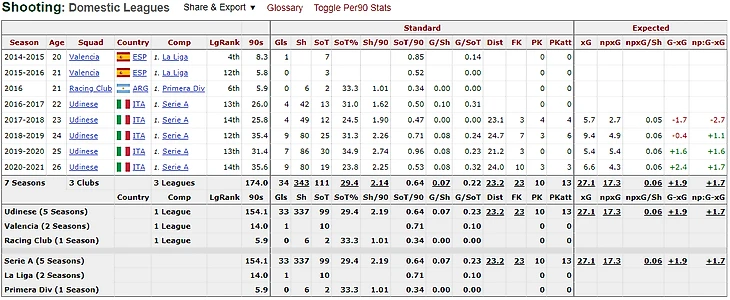Родриго очень часто бьёт не из самых выгодных позиций, когда есть хорошие варианты обострения. Среднее расстояние, с которого Родриго пытается бить по чужим воротам, едва достигает 22 метров.