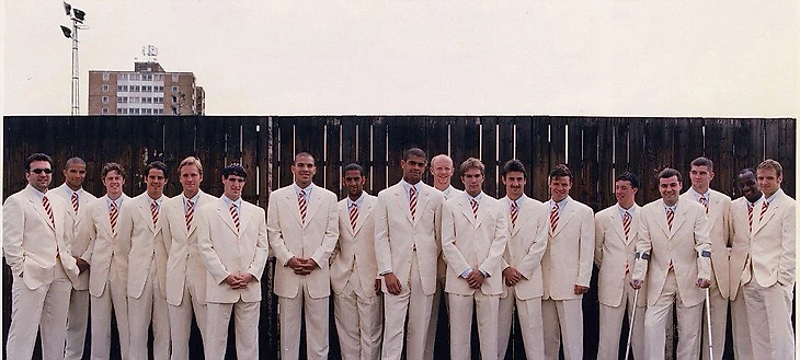 Столкновение между старым и новым футбольным миром на «Энфилде» в 1990-х годах воплощено в образе учтивого хореографа подиума в том, что тогда еще было ветхой деревянной хижиной в Мелвуде. «Уверяю тебя, Армани стоял там в столовой Мелвуда с двумя лакеями, просматривающими цветовую гамму, — сказал Стэн Коллимор. — В то время у Дэвида Джеймса был с ними контракт, и некоторые игроки были не прочь носить кричащие наряды. Даже капитан Джон Барнс иногда появлялся в костюме канареечного цвета, так что существовало некоторое волнение, когда пара игроков увидела кремовые костюмы. Никто не придал этому значения. Мы думали: "Мы собираемся выиграть Кубок Англии. Кому какое дело до костюмов?"»