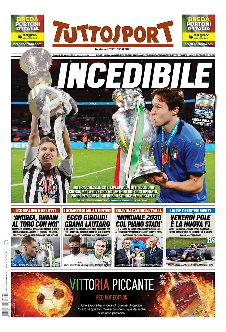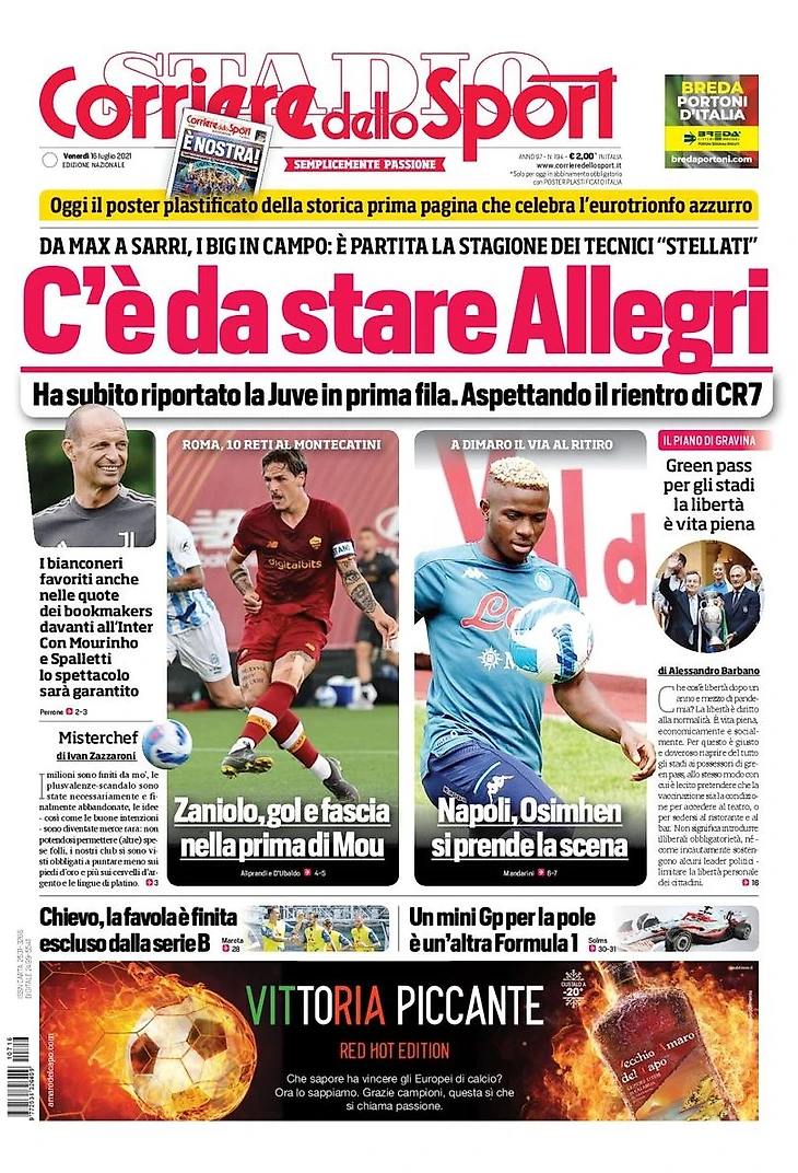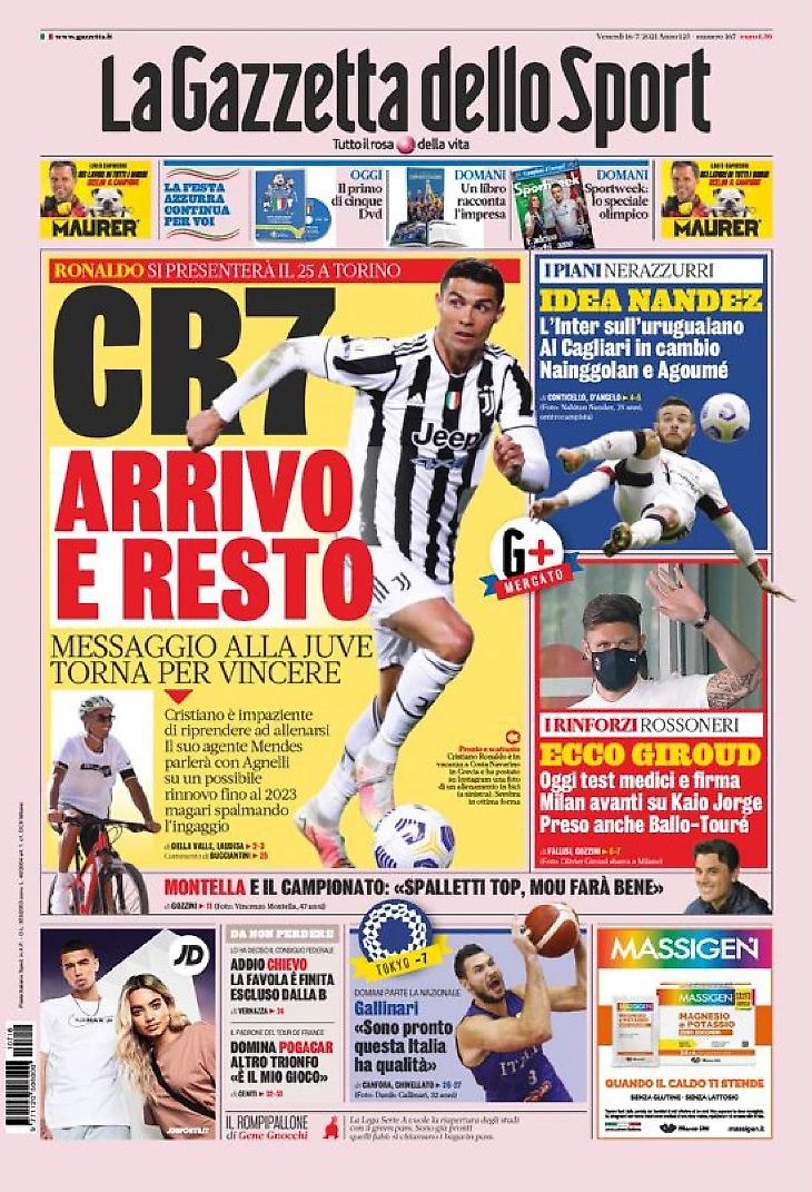 Не подлежащий продаже. Заголовки Gazzetta, TuttoSport и Corriere за 16 июля