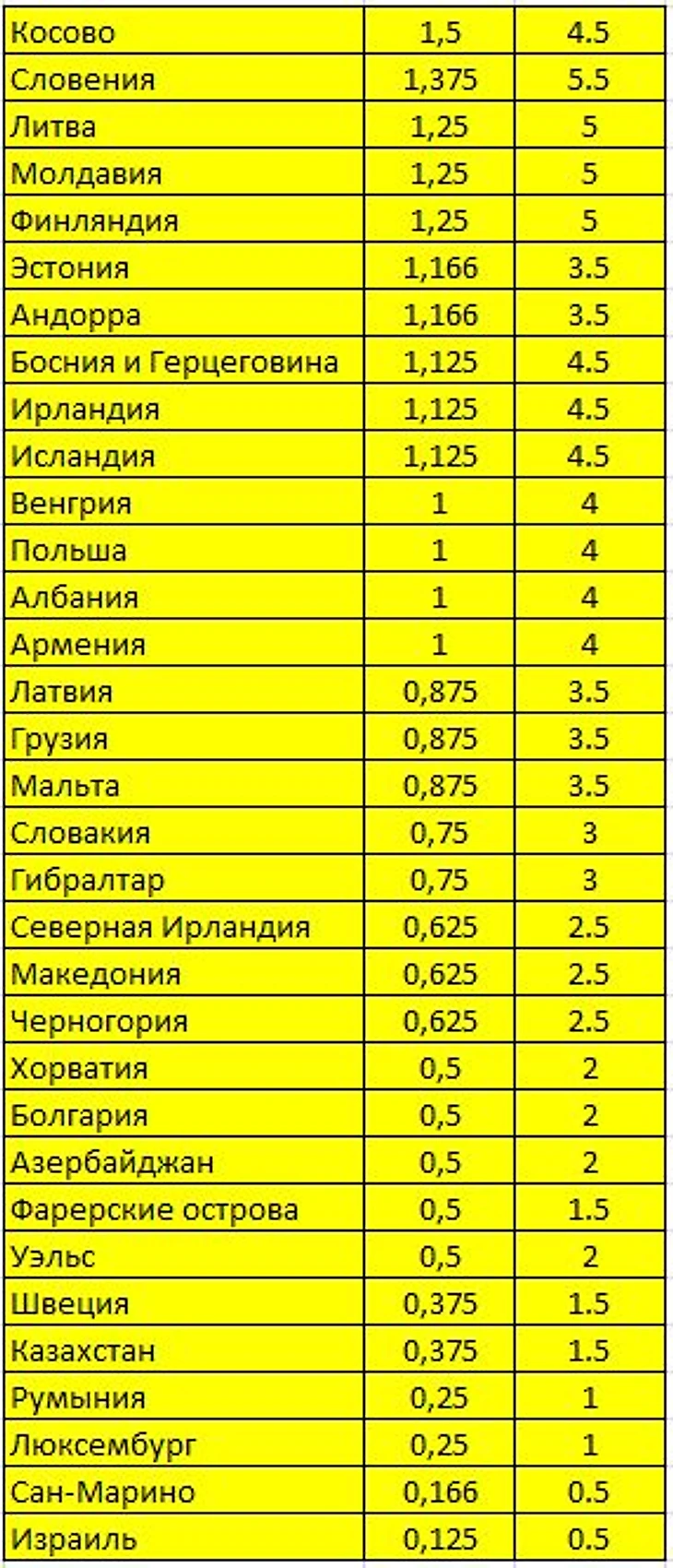 А теперь традиционная таблица набранных очков и коэффициента. Уже со следующей недели таблиц будет больше поскольку в бой вступит первый российский клуб. Сортировка по коэффициенту за сезон, а не по набранным очкам. Страны, не набравшие очков и страны с бонусными очками за ЛЧ в сегодняшней таблице не учитываются.