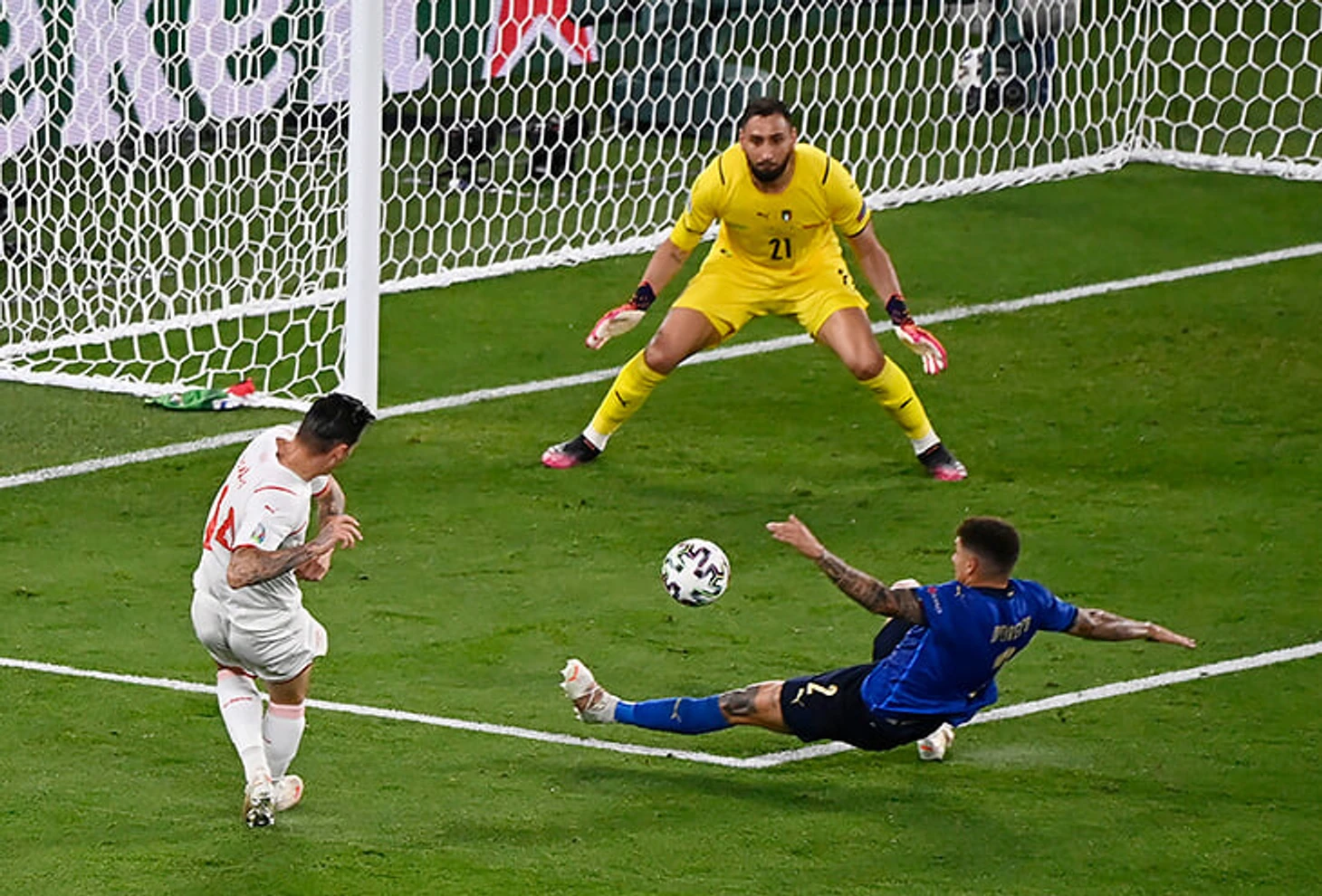 При счете 2:0 у Швейцарии был лучший момент забить – Доннарумма спас после удара Стивена Цубера. Сальваторе Сиригу, главный мотиватор Италии, считает, что этот сэйв не менее важен, чем забитые голы. «Я сказал Доннарумме, что работы будет мало, они будут бить мало, – пояснял Сиригу. – Но это такой матч, что минуте на 70-й придется сделать сложный сэйв. Поэтому я попросил его быть сосредоточенным, быть в игре. Так всегда – мы владеем инициативой, мы атакуем, а потом случается момент у соперника».
