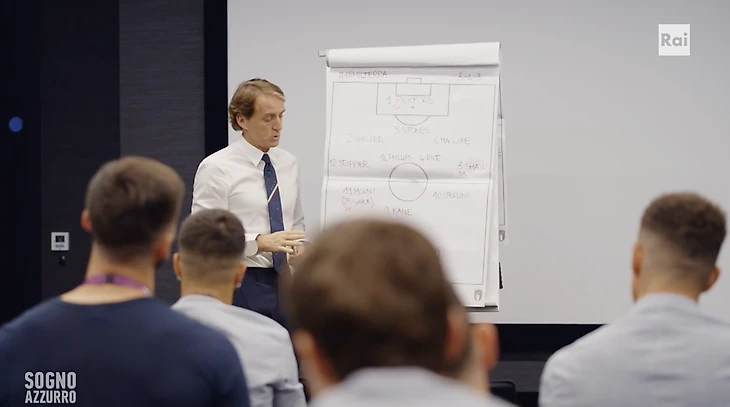 Накануне игры со Швейцарией (Италия победит 3:0) Манчини давал такие указания: «Важно быть очень быстрыми, когда мяч у нас, и рисковать. До последней трети играем в два-три касания. Дальше – фантазируйте, это вы умеете. Играем внимательно, не спорим с судьей. Делаем то, что умеем».