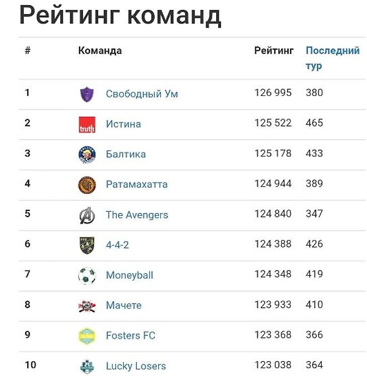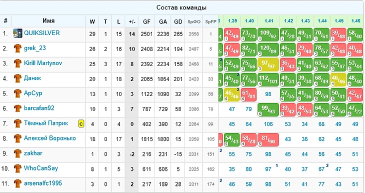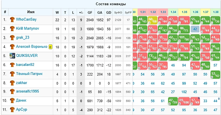 Лучший в ОЗ - grek_23 - 2 место, причем уступил только VGR22. Лучший бомбардир команды - Темный Патрик с 28 мячами. 6 игроков в топ-100.