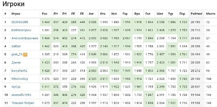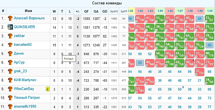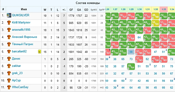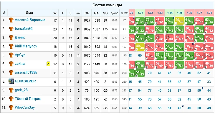Лучший бомбардир команды - barcafan92 - 23 мяча, лучший результат в ОЗ у Алексея Воронько. В целом результаты для нашей команды не очень - всего три игрока в топ-100.