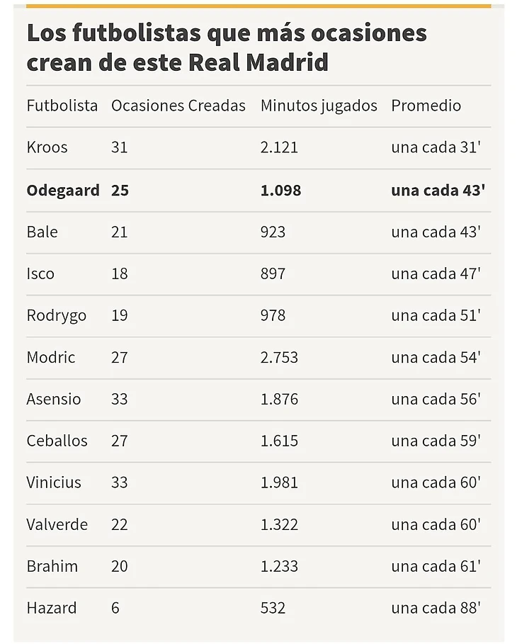Футболисты «Мадрида», создавшие больше всего голевых моментов в Ла Лиге и АПЛ в прошлом сезоне.