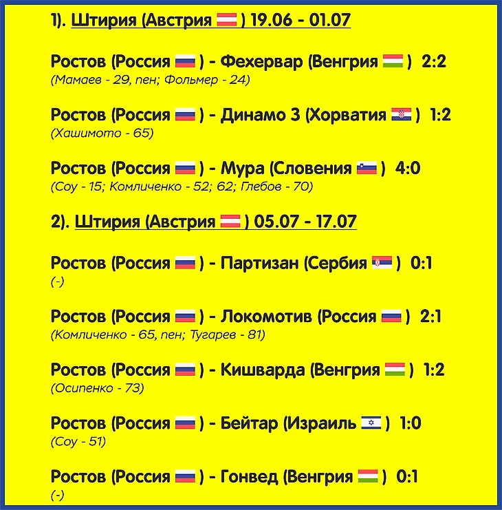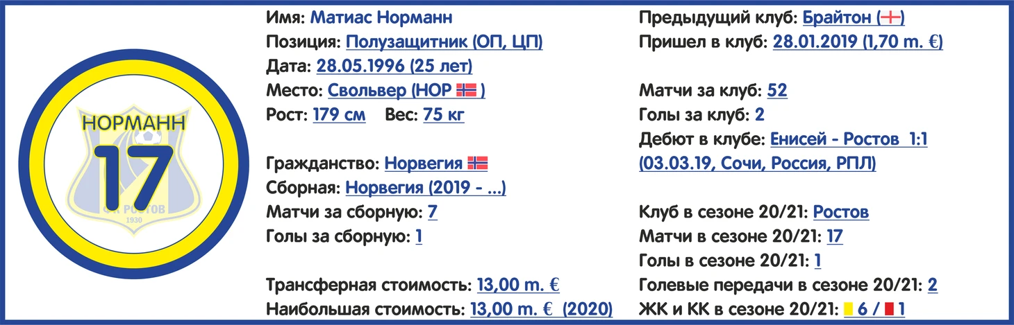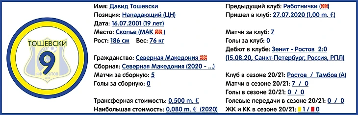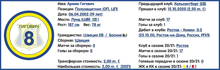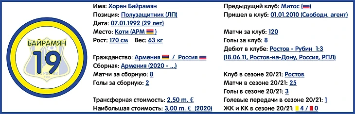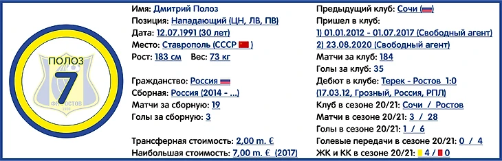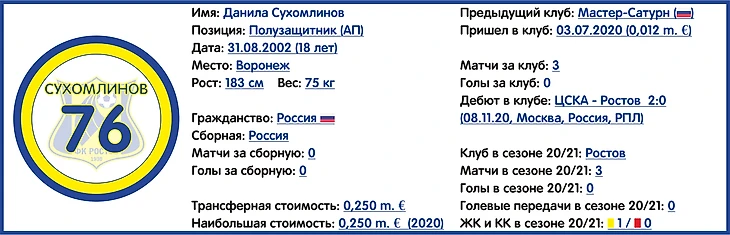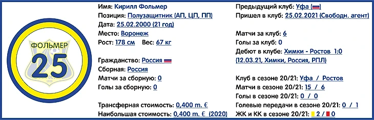Ну и в ростере команды числятся защитники Томас Рукас и Константин Ковалёв, полузащитник Евгений Черкес, а также нападающие Александр Долгов, Данила Прошляков и Артур Сохиев, однако всех их в заявке Ростова на этот сезон пока что нет (на время публикации статьи).