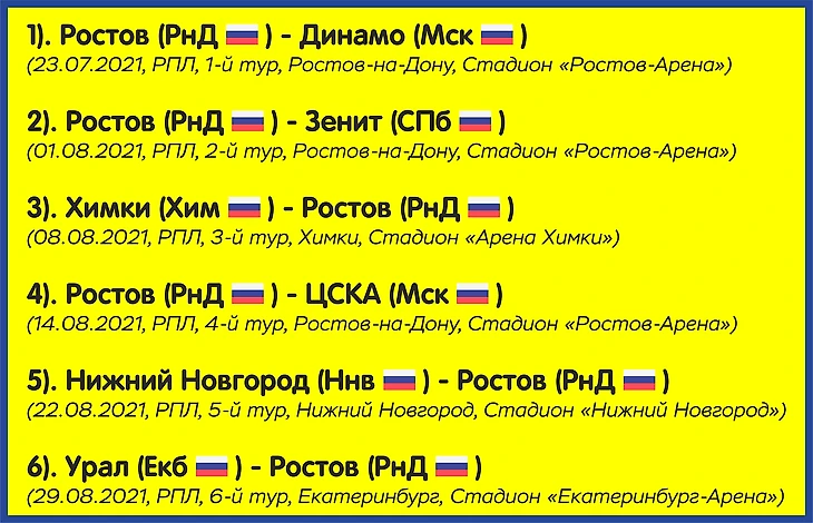 Статистическое превью ФК «Ростов» от блога «Топ-7 Матчей Недели»
