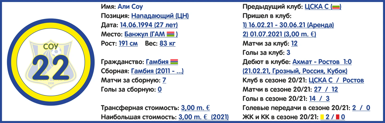В нападении ростовчан выбор также достаточно широк, и стало это возможным в первую очередь благодаря выкупу у софийского «ЦСКА» трансфера Али Соу и аренде у московского «Динамо» Николая Комличенко.