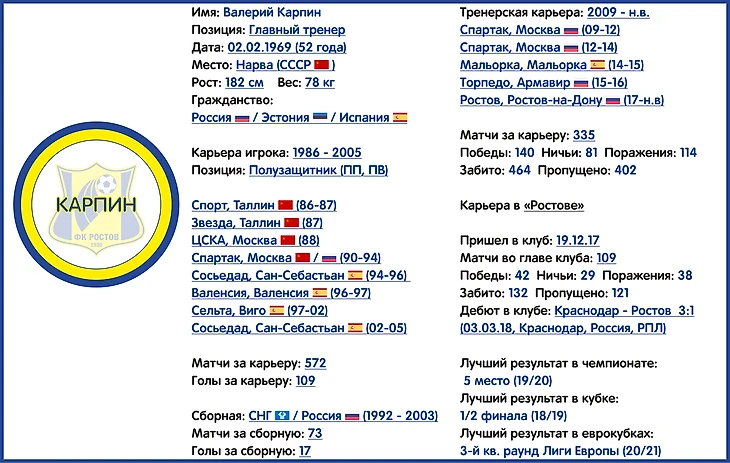 Для Валерия Карпина это будет уже 5-й сезон во главе ростовчан, и пока что команде под его руководством не удавалось поднять выше 5-го места по итогам сезона (2019/2020).